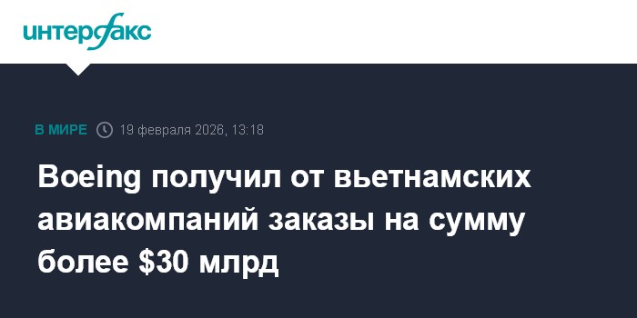 Москва. 19 февраля. INTERFAX.RU - Американская Boeing Co. заключила сделки о продаже вьетнамским авиакомпаниям почти 100 самолетов более чем за $30 млрд, пишет The Wall Street Journal.