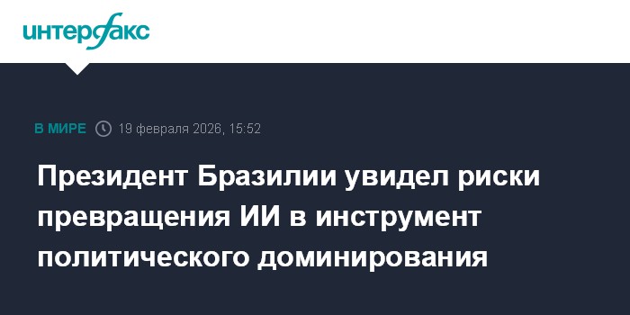Москва. 19 февраля. INTERFAX.RU - Сосредоточение вычислительных возможностей и данных у немногих государств и отдельных компаний угрожает превращением искусственного интеллекта в инструмент политического и экономического доминирования, полагает президент Бразилии Луис Инасиу Лула да Силва.