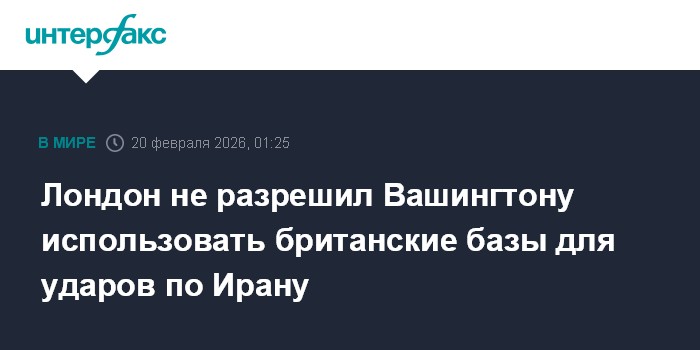 Москва. 20 февраля. INTERFAX.RU - Великобритания заблокировала США использование баз Королевских ВВС для нанесения ударов по Ирану, сообщает The Times.