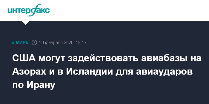 Москва. 20 февраля. INTERFAX.RU - Стратегические бомбардировщики ВВС США могут задействовать авиабазы на Азорах и в Исландии для нанесения ударов по Ирану, сообщает издание The War Zone.