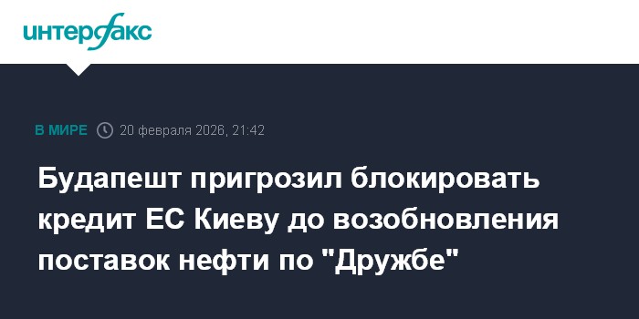 Москва. 20 февраля. INTERFAX.RU - Будапешт будет блокировать процесс выделения кредита ЕС в 90 млрд евро для Украины, пока не будет возобновлена работа нефтепровода "Дружба", заявил в пятницу глава МИД Венгрии Петер Сийярто.
