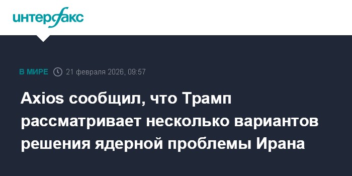 Москва. 21 февраля. INTERFAX.RU - Администрация президента США Дональда Трампа рассматривает несколько вариантов решения иранской ядерной проблемы, начиная с ликвидации верховного лидера Ирана Али Хаменеи и его сына, и заканчивая дипломатическим решением, которое позволяет Ирану "символически" обогащать уран, пишет в субботу портал Axios.