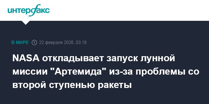 Москва. 22 февраля. INTERFAX.RU - Запуск американской лунной миссии Artemis II, планировавшийся 6 марта, переносится из обнаруженного нарушения потока гелия в двигательной установке второй ступени ракеты SLS, сообщил глава NASA Джаред Айзекман.