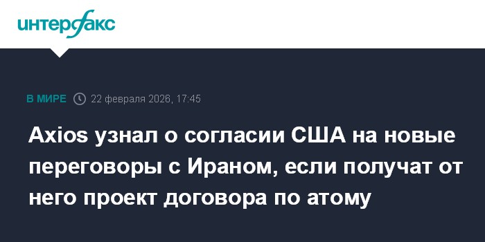 Москва. 22 февраля. INTERFAX.RU - Американские переговорщики согласны провести новый раунд переговоров с Ираном, если в течение ближайших 48 часов получат от Тегерана проект соглашения по атомной проблеме, сообщает в воскресенье журналист Axios Барак Равид.