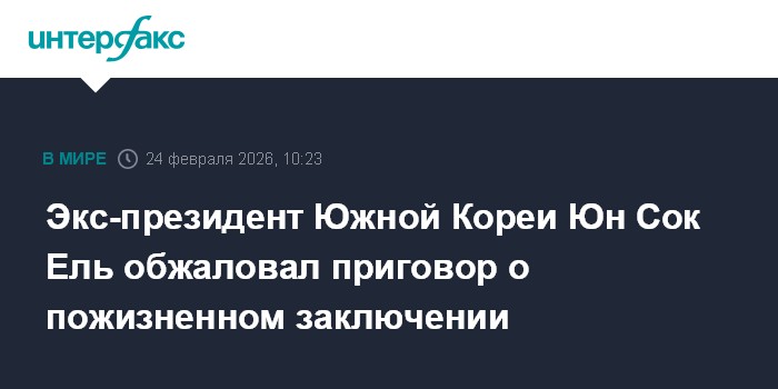 Москва. 24 февраля. INTERFAX.RU - Бывший президент Южной Кореи Юн Сок Ель подал апелляцию на вынесенный ранее в феврале приговор о пожизненном лишении свободы по делу о введении в стране военного положения в 2024 году, сообщает во вторник Associated Press со ссылкой на адвокатов экс-главы государства.