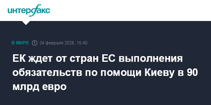 Москва. 24 февраля. INTERFAX.RU - Еврокомиссия пока придерживается своего предложения о выделении 90 млрд евро финансовой помощи Украине на 2026-2027 годы за счет займов, как это решил Евросовет, заявила пресс-секретарь ЕК Паула Пинью.