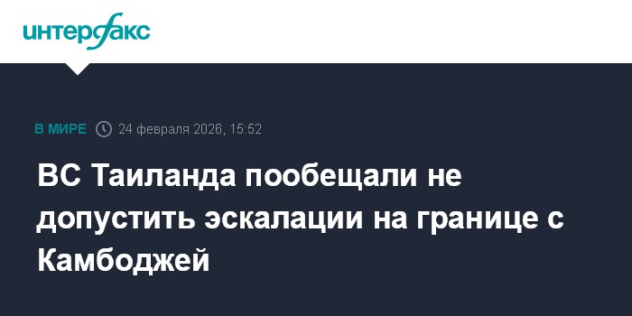 Москва. 24 февраля. INTERFAX.RU - Армия Таиланда примет меры, чтобы избежать эскалации после сообщений о том, что камбоджийские военные открыли минометный огонь близ границы, заявил главнокомандующий сухопутными войсками Таиланда генерал Пана Клаевплодтук. Об этом пишет The Nation.