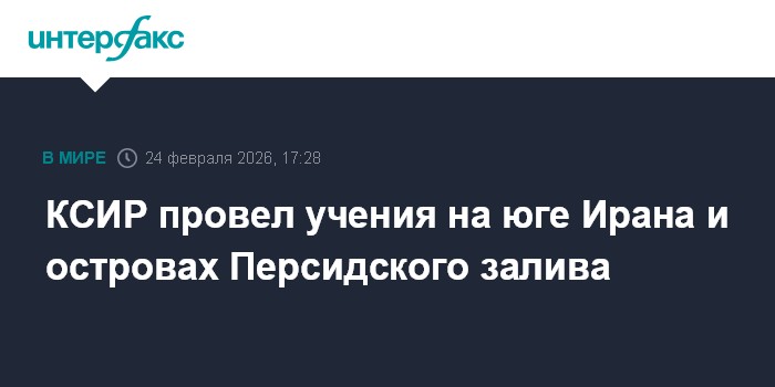 Москва. 24 февраля. INTERFAX.RU - Сухопутные войска Корпуса стражей Исламской революции (КСИР) провели комплексные военные учения в южных районах Ирана и на островах Персидского залива, сообщает Tasnim.