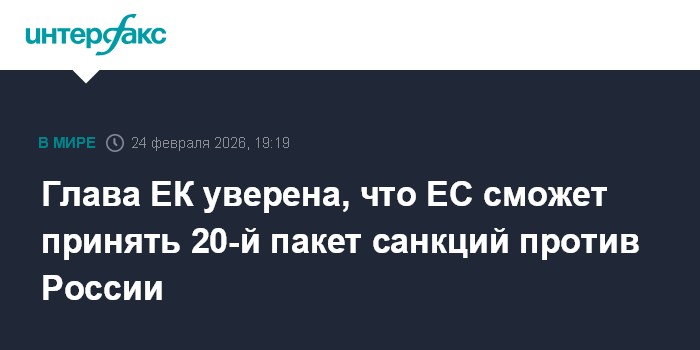 Глава ЕК уверена, что ЕС сможет принять 20-й пакет санкций против России