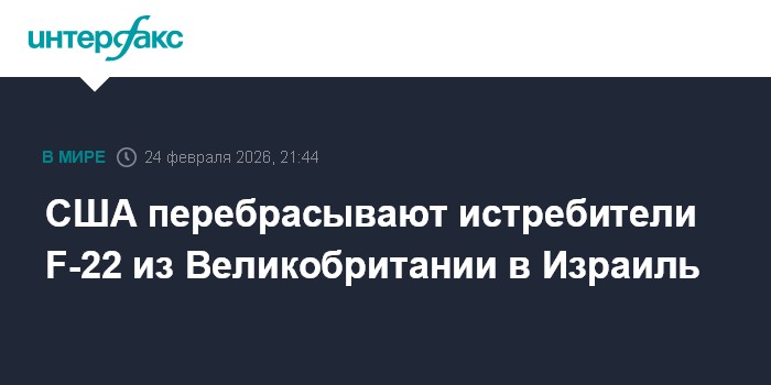 Москва. 24 февраля. INTERFAX.RU - США направили 11 многоцелевых истребителей F-22 из Великобритании на военно-воздушную базу на юге Израиля, сообщает The Times of Israel.