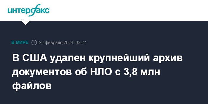 Москва. 25 февраля. INTERFAX.RU - Крупнейший открытый архив рассекреченных материалов о неопознанных летающих объектах исчез с сервера спустя считаные часы после заявления президента США Дональда Трампа о публикации данных о внеземной жизни. Об этом пишет британская газета Daily Mail.