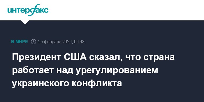 Москва. 25 февраля. INTERFAX.RU - США активно работают над урегулированием украинского конфликта, заявил американский президент Дональд Трамп, выступая в Конгрессе.