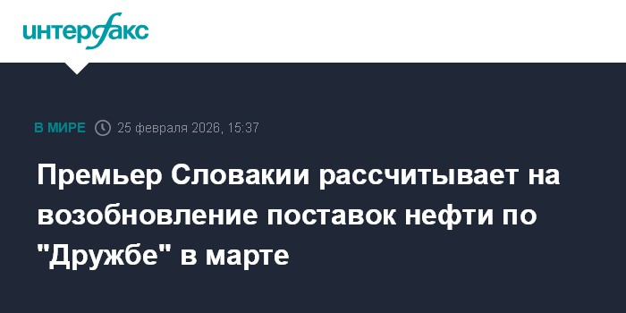 Москва. 25 февраля. INTERFAX.RU - Поставки нефти по трубопроводу "Дружба" могут возобновиться, самое ранее, 3 марта, заявил в среду премьер Словакии Роберт Фицо.