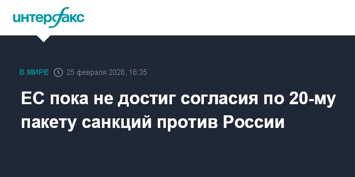 ЕС пока не достиг согласия по 20-му пакету санкций против России