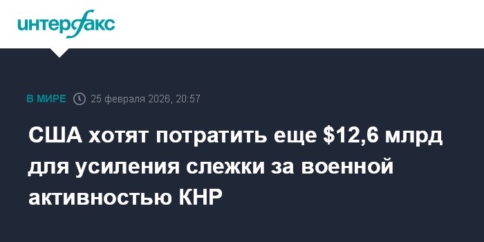 Москва. 25 февраля. INTERFAX.RU - Американские власти хотят потратить еще $12,6 млрд с целью усилить средства слежения за военной активностью КНР, сообщает в среду Bloomberg со ссылкой на документ, переданный Конгрессу США.