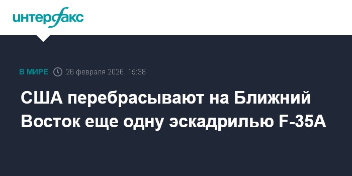 Москва. 26 февраля. INTERFAX.RU - США направили в Европу для последующей переброски на Ближний Восток еще одну эскадрилью стелс-истребителей пятого поколения F-35A Lightning II, по данным авиаресурса Military Air Tracking Alliance (MATA).