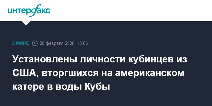 Москва. 26 февраля. INTERFAX.RU - Власти Кубы опознали всех находившихся на катере, который в ночь на четверг со стороны США вошел в кубинские территориальные воды, где произошла перестрелка, в следствие которой несколько человек на катере погибли.