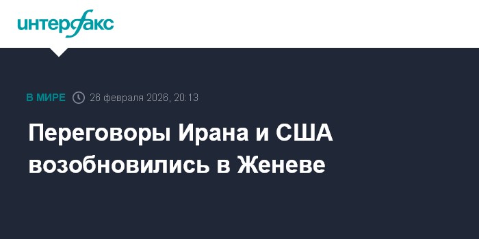 Москва. 26 февраля. INTERFAX.RU - Переговоры Ирана и США вновь идут в четверг в Женеве после перерыва, сообщает "Мехр".