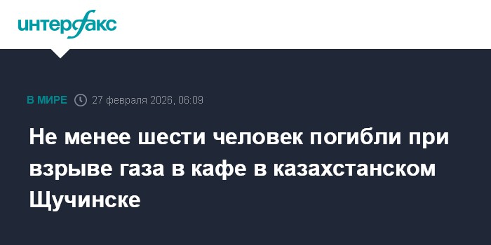 Москва. 27 февраля. INTERFAX.RU - В городе Щучинске Акмолинской области Казахстана в результате взрыва газа с последовавшим пожаром погибли не менее шести человек, еще около 20 пострадали, сообщила в ночь на пятницу пресс-служба областного департамента по ЧС.