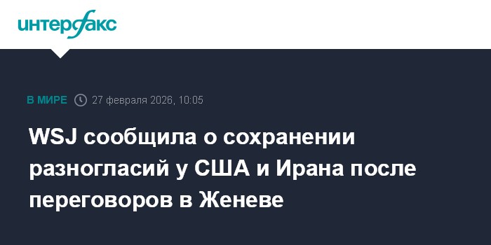 WSJ сообщила о сохранении разногласий у США и Ирана после переговоров в Женеве
