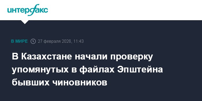 Москва. 27 февраля. INTERFAX.RU - Генпрокуратура Казахстана начала проверку бывших казахстанских чиновников, которые были упомянуты в так называемых файлах Эпштейна, сообщил журналистам генпрокурор Берик Асылов.