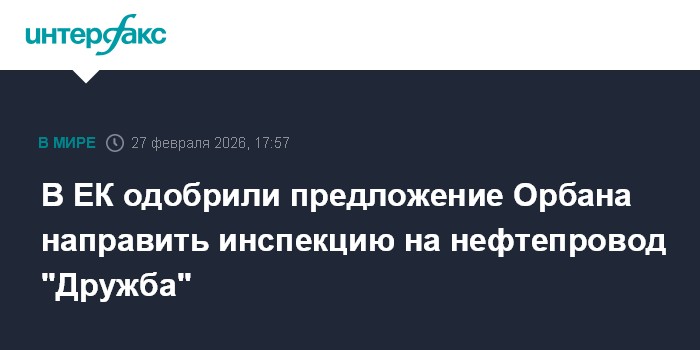 Москва. 27 февраля. INTERFAX.RU - В Еврокомиссии приветствовали инициативу премьер-министра Венгрии Виктора Орбана направить на Украину миссию, которая ознакомится с состоянием ремонтных работ на поврежденном нефтепроводе "Дружба".