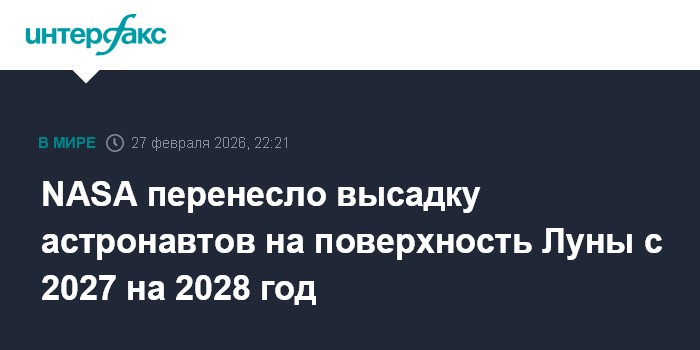 Москва. 27 февраля. INTERFAX.RU - Высадку американских астронавтов на поверхность Луны планируется осуществить в 2028 году, сообщило в пятницу NASA, объявив о крупной реорганизации своей лунной программы Artemis.
