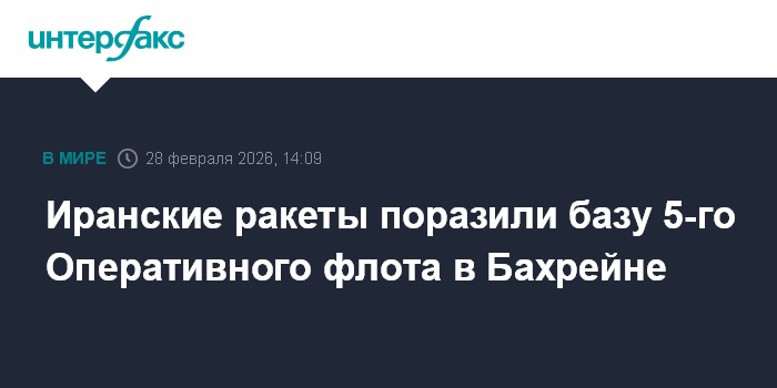 Москва. 28 февраля. INTERFAX.RU - Иранские ракеты попали в американскую военно-морскую базу в Бахрейне, где размещен штаб 5-го Оперативного флота США, сообщило государственное информационное агентство Бахрейна (BNA).