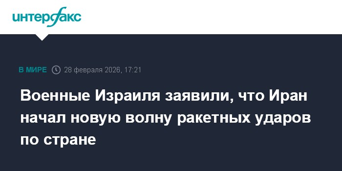 Москва. 28 февраля. INTERFAX.RU - Иран запустил по Израилю еще одну группу баллистических ракет, сообщила Армия обороны Израиля.