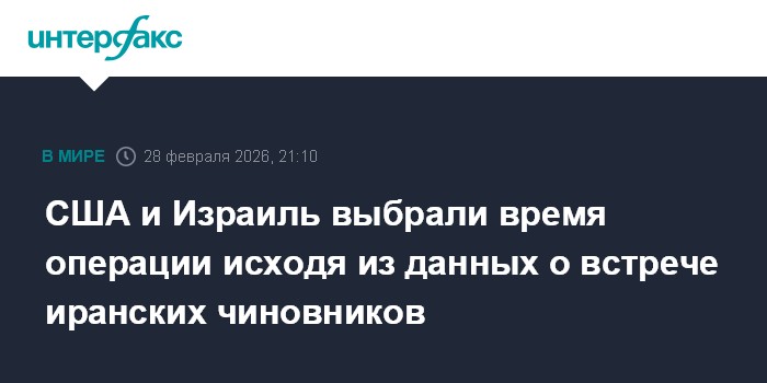 "Израильский военный чиновник, а также человек, знакомый с планированием операции, заявили, что Израиль и США определили время начала ударов на основе разведывательных данных о том, когда пройдет встреча высокопоставленных чиновников Ирана", - пишет газета.