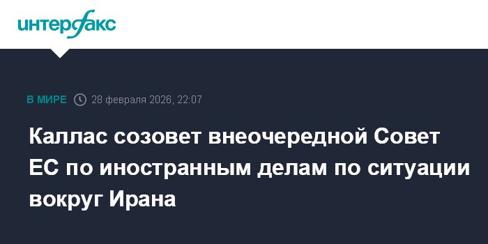 "В воскресенье я созову внеочередное заседание совета по иностранным делам по видеосвязи, чтобы обсудить ситуацию в Иране и стремительно развивающиеся события на Ближнем Востоке", - написала Каллас в сети X.