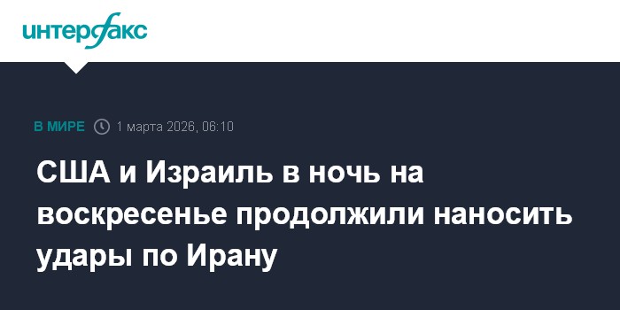 Москва. 1 марта. INTERFAX.RU - Центральное командование ВС США (CENTCOM) информировало, что продолжает операцию против Ирана, Армия обороны Израиля (ЦАХАЛ) также подтвердила новую серию воздушных ударов.