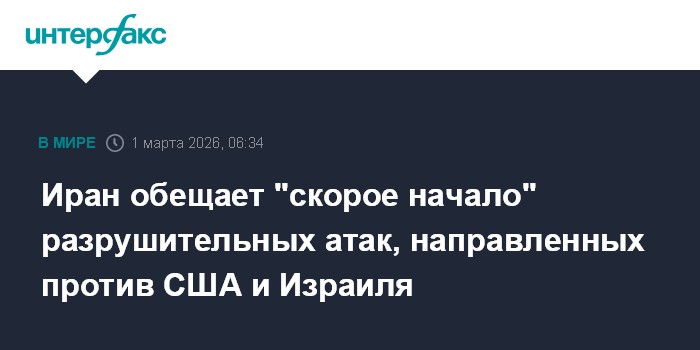 Москва. 1 марта. INTERFAX.RU - Корпус стражей Исламской революции (КСИР) заявил о "скором начале" самых разрушительных атак в отношении Израиля и США.