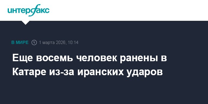 Москва. 1 марта. INTERFAX.RU - Не менее восьми человек получили ранения в Катаре в результате иранских ударов в воскресенье утром, сообщило катарское МВД.