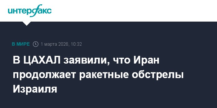 Москва. 1 марта. INTERFAX.RU - Иран в воскресенье утром возобновил ракетные удары по Израилю, сообщили представители Армии обороны Израиля (ЦАХАЛ).