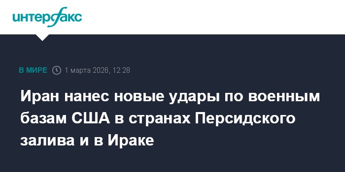 Москва. 1 марта. INTERFAX.RU - ВВС Ирана в воскресенье нанесли новую серию ударов по американским военным базам в странах Персидского залива и в Иракском Курдистане, сообщило агентство Tasnim.