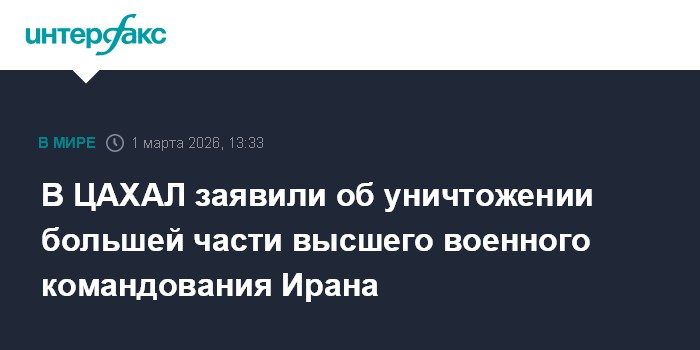 Москва. 1 марта. INTERFAX.RU - Армия обороны Израиля (ЦАХАЛ) в воскресенье отчиталась об уничтожении практически всего высшего военного руководства Ирана.