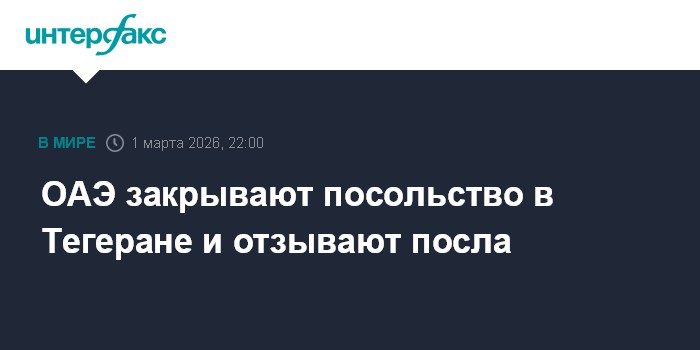 Москва. 1 марта. INTERFAX.RU - Власти ОАЭ объявили о решении закрыть посольство в Тегеране и отозвать посла и всех членов дипмиссии из-за ударов Ирана по территории эмиратов.