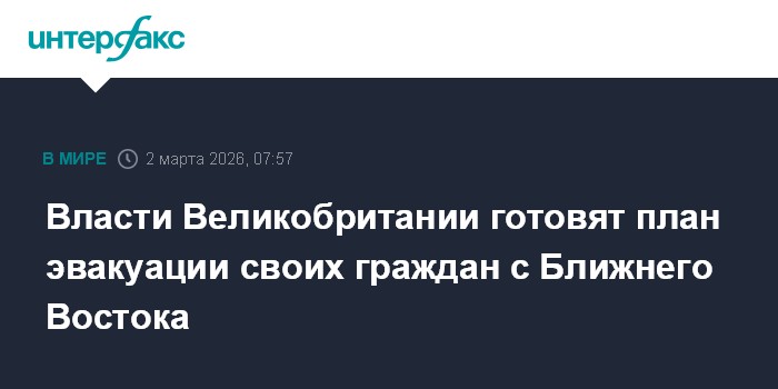 Москва. 2 марта. INTERFAX.RU - Лондон на фоне операции США и Израиля против Ирана готовится эвакуировать своих граждан из стран Ближнего Востока, пишет Daily Mail.