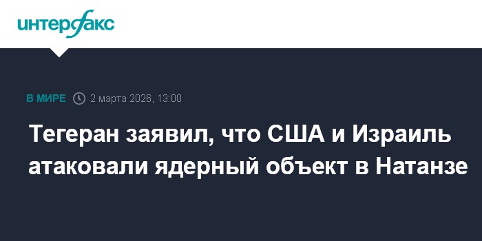 Москва. 2 марта. INTERFAX.RU - Постпред Ирана при МАГАТЭ Реза Наджафи заявил в понедельник, что США и Израиль нанесли удары по ядерному объекту в Натанзе.