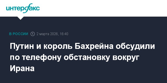 Путин и король Бахрейна обсудили по телефону обстановку вокруг Ирана