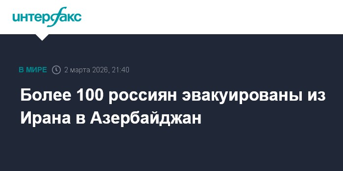 Москва. 2 марта. INTERFAX.RU - Из Ирана в Азербайджан в течение понедельника эвакуированы 114 граждан Российской Федерации, сообщили азербайджанские СМИ.