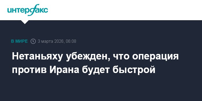 Москва. 3 марта. INTERFAX.RU - Иран сильно ослаблен в результате действий США и Израиля, операция будет быстрой, считает израильский премьер-министр Биньямин Нетаньяху.