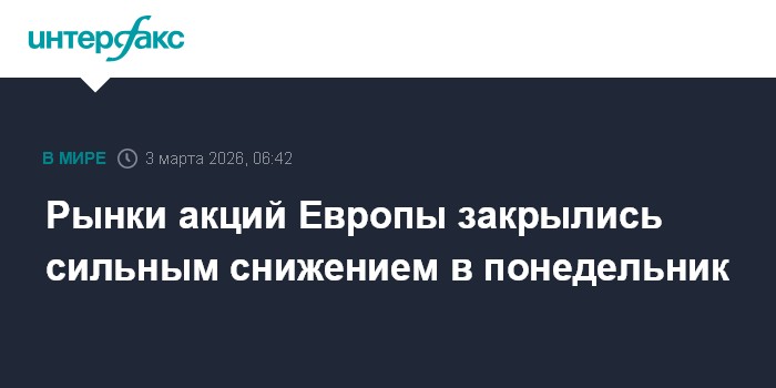 Москва. 3 марта. INTERFAX.RU - Европейские фондовые индексы завершили торги в понедельник падением на опасениях инвесторов по поводу последствий перехода конфликта на Ближнем Востоке в военную фазу.