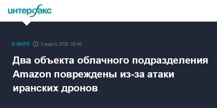 Москва. 3 марта. INTERFAX.RU - Два объекта облачного подразделения Amazon подверглись ударам иранских беспилотников, сообщает во вторник The New York Times.
