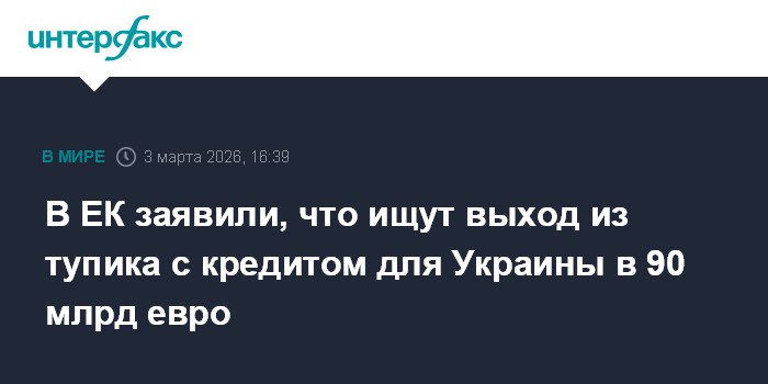 Москва. 3 марта. INTERFAX.RU - Еврокомиссия (ЕК) продолжает искать решение для выделения Украине заблокированного Венгрией кредита в 90 млрд евро на 2026-2027 годы, сообщила официальный представитель ЕК Паула Пинью.