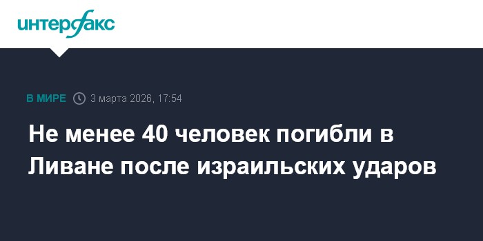 Москва. 3 марта. INTERFAX.RU - С понедельника как минимум 40 человек погибли в Ливане от авиаударов Армии обороны Израиля (ЦАХАЛ), сообщают во вторник ближневосточные СМИ со ссылкой на министерство здравоохранения страны.
