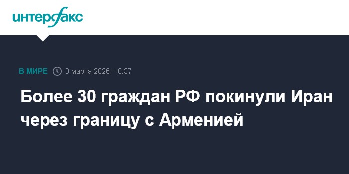Москва. 3 марта. INTERFAX.RU - Более 30 граждан России покинули территорию Ирана через границу с Арменией, заявили в посольстве РФ в Ереване.