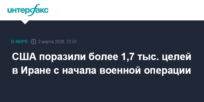 Москва. 3 марта. INTERFAX.RU - Американские войска уже поразили более чем 1,7 тыс. целей в Иране с начала военной операции "Эпическая Ярость". Об этом сообщило во вторник Центральное командование ВС США на Ближнем Востоке (CENTCOM).