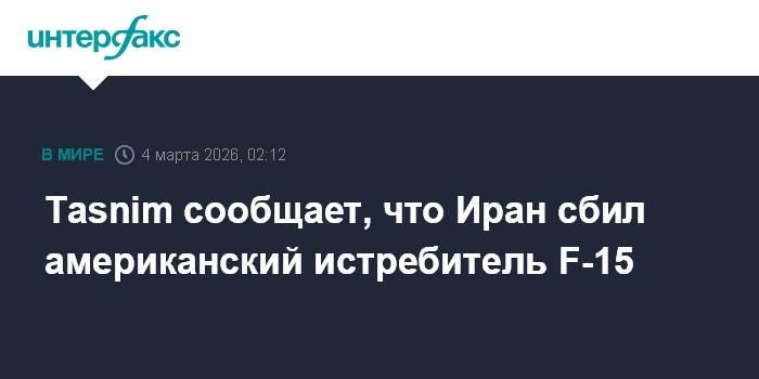 Москва. 4 марта. INTERFAX.RU - Иранские военные сбили еще один американский истребитель F-15, сообщает Tasnim со ссылкой на осведомленный источник.